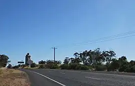 Antwerp railway station and sidings on the Dimboola to Jeparit railway line opened in June 1894.[7] Passengers were carried on mixed goods/passenger trains pre-war (six days per week in 1928).[8] The railway line was converted from broad to standard gauge in 1995.[9]