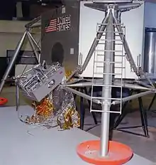 Lunar module training mockup, showing relative position of deployed camera on the MESA