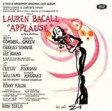 Composer Charles Strouse and lyricist Lee Adams (who had previously collaborated on the score to Bye Bye Birdie, among others) wanted to write a musical version of the 1950 movie, All About Eve.[1] However, Twentieth Century Fox, which owned the rights to the movie, refused to grant them the rights to the script or the title.[1] They were, however, able to purchase the stage rights to the short story on which All About Eve had been based, Mary Orr's "The Wisdom of Eve".[1] The resulting musical could not contain any dialogue or characters that had been created for the movie but could use the original material that the movie also used.[1] In April 1969, it was announced that Strouse, Adams, and book writer Sidney Michaels were beginning to work on the show, with Lawrence Kasha and Joseph Kipness producing.[2] In July 1969, movie star Lauren Bacall was cast as aging theater star Margo Channing, the role played by Bette Davis in All About Eve.[3] Bacall greatly identified with the role, explaining, "The Margo Channing of Applause and myself were ideally suited. She was approaching middle age. So was I. She was being forced to face the fact that her career would have to move into another phase as younger women came along to do younger parts. So was I. And she constantly felt that the man she was in love with was going to go off with someone else, someone younger of course, and I, too, had had those feelings".[4]