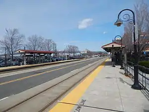- ↑ Mulvihill, Geoff (March 15, 2004). "Smooth Sailing for Light Rail on First Day of Operation". The Courier-News. Bridgewater, New Jersey. Associated Press. p. A3. Retrieved February 23, 2019 – via Newspapers.com.
