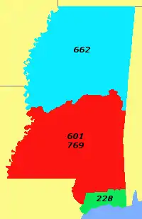 Mississippi area codes: 228, 601/769, 662