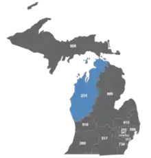 Map of area code 231 in Michigan.