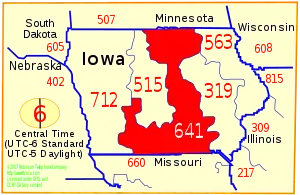 Iowa area codes: 319, 515, 563, 641, 712