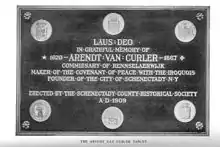 Arent van Curler, later van Corlaer, (1619, Nijkerk, Gelderland - 1667) was the grandnephew of Kiliaen van Rensselaer.[1] In 1637 Rensselaer commissioned him as his secretary and accountant at Rensselaer's patroonship Rensselaerswyck in the Dutch colony of New Netherland.