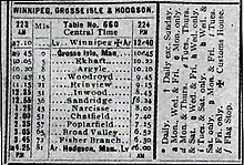 In 1912, a small spur line built by the Canadian Northern Railway branched off the Oak Point Subdivision at Grosse Isle heading north. This first year, the railway reached a gravel pit, possibly to supply future or existing railbeds. The next year, this new local line reached through the Argyle and Brant Districts, ending at Woodroyd, Manitoba. Eventually, the line was built to Hodgson, following a zig-zag formation to pass nearest the existing settlements.