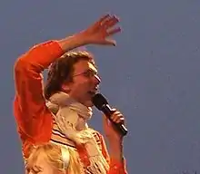 Adje became a popular character on the show and quickly acquired a cult following. As a result, De Leeuw gave Adje his own segment, titled Adje's A-Team. However, the segment and the continuous on-camera abuse and enslaving of the character Adje led to criticism as well.[6] During the New Year's Eve episode of 2006, De Leeuw took Adje by his scarf, trying to strangle him. In another Sinterklaas-themed episode, De Leeuw tried to forcefully drown Adje several times, clearly also to the surprise of Van Bavel. In 2007, Paul de Leeuw and Adje received wide criticism from the Dutch Christian community, including the SGP, after perching Adje to a cross during a concert in the Gelredome.[7] Nonetheless, Van Bavel later said that although De Leeuw and he did surprise each other at times, he had never felt unsafe or that borders had been crossed.[8]