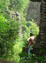 The raha niches on three sides uniformly measure 0.55 metres in height x 0.3 metres in width x 0.15 metres in depth are all empty. However, on both sides the niches are decorated with scrollwork.