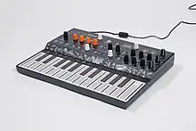 The MicroFreak is a synthesizer manufactured by French music technology company Arturia and released in 2019.[1] Described as a "Hybrid Experimental Synthesizer", it uses 18 digital sound engines (algorithms) to synthesize raw tones.[2] This digital oscillator is then fed into a multi-mode analog filter, giving the MicroFreak its hybrid sounds.