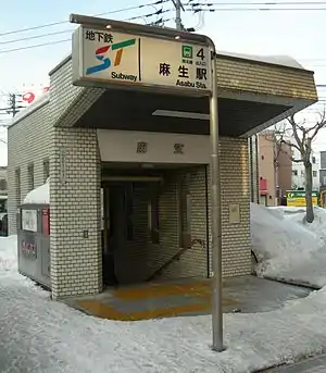 Asabu Station (麻生駅, Asabu-eki) is a railway station on the Namboku Line in Kita-ku, Sapporo, Hokkaido, Japan, operated by the Sapporo Municipal Subway. The station is numbered N01.
