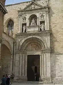 - San Francesco: gothic style church begun in 1258. The dome was completed in 1549. A monument to Pope Julius II is in the side portal, while the central portal is one of the finest examples of local travertine decoration. Adjacent to the church is the 16th-century Loggia dei Mercanti, in Bramantesque style of the Roman High Renaissance.