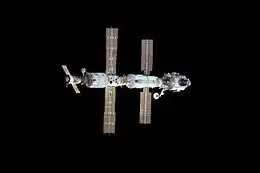 | Nauka (MLM-U)[26] | 3R | 2021-07-21 | Proton-M | 13 m (43 ft) | 4.25 m (13.9 ft) | 20,300 kg (44,800 lb) | ![]() |
