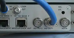 Asynchronous Serial Interface, or ASI, is a method of carrying an MPEG Transport Stream (MPEG-TS) over 75-ohm copper coaxial cable or optical fiber.[1] It is popular in the television industry as a means of transporting broadcast programs from the studio to the final transmission equipment before it reaches viewers sitting at home.