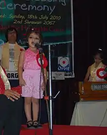 2. "Three-year-old Nepali singer vies for world record". Kuwait Times. 14794: 40. 19 July 2010.