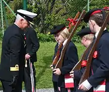 Karlsvik (left) with Buekorps members at Bergenhus Fortress