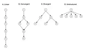 The cognitive model can be represented by various hierarchical structures. Generally, there are four general forms of hierarchical structures that can easily be expanded and combined to form increasingly complex networks of hierarchies where the cognitive complexity corresponds to the nature of the problem solving task. The four hierarchical forms include: a) linear, b) convergent, c) divergent, and d) unstructured.