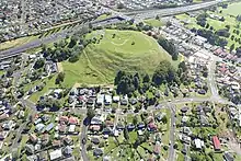 | Te Puke ō Tara / Otara Hill | 56.5 | 89 metres (292 ft) (quarried) | 36°56′50″S 174°53′54″E / 36.947105°S 174.898363°E | ![]() The buildings in the middle of the photo are on the site of quarried away Te Puke ō Tara / Otara Hill volcano, 2009 | |