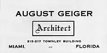 August Geiger (September 2, 1887[1] - 1968) was one of the most prominent American architects in South Florida from 1905 to the late 1940s. He experimented in Mission, Neo-Renaissance and Art Deco architecture, but is most noted for his works in the Mediterranean Revival style. A number of his works are listed on the U.S. National Register of Historic Places.
