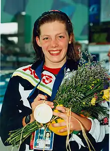Louise Sauvage, from Perth, won gold in the Women's 1,500 m T52-53 (time of 3:30.45, a world record), gold in the Women's 400 m T53, with a result of 54.96, a Paralympic record, gold in the Women's 5,000 m T52-53 time of 12:40.71, a world record, and a final gold in the Women's 800 m T53 (time of 1:52.80, a Paralympic record).[14] Louise's world record in the 1500 m took 6 seconds off the previous record, and her record in the 5000 m took place only an hour after winning the 400 m.[2]