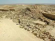 Avdat (Hebrew: עבדת, Arabic: عبدة, Abdah), also known as Abdah and Ovdat and Obodat, is a site of a ruined Nabataean city in the Negev desert in southern Israel. It was the most important city on the Incense Route after Petra, between the 1st century BCE and the 7th century CE. It was founded in the 3rd century BCE, and inhabited by Nabataeans, Romans, Byzantines, and during the early Islamic period.[1][2] Avdat was a seasonal camping ground for Nabataean caravans travelling along the early Petra–Gaza road (Darb es-Sultan) in the 3rd – late 2nd century BCE. The city's original name was changed to Avdat in honor of Nabataean King Obodas I, who, according to tradition, was revered as a deity and was buried there.[3][4]
