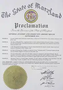 - 2014 September 2014 is proclaimed by the governor to be "General Aviation and Community Airport Month".