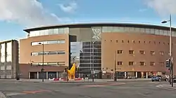 Its award-winning, Tithebarn building was designed by architects Austin-Smith:Lord, and built in 1997.[note 1][1] To its front, is the Superlambanana, a sculpture of Liverpool. The building is alternatively known locally by students as, the Tithebarn (after the building) or (Super)lambanana building (after the statue in front).[2]
