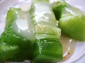Bánh đúc is a Vietnamese bánh (cake). There are two main types of bánh đúc, the white Northern Vietnamese cake and the green Southern version.