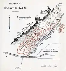 Falling back by echelons, the French recrossed the Song Thuong under fire and regrouped on its southern bank. In the afternoon of 24 June the column retreated to Bắc Lệ, followed at a respectful distance by the victorious Chinese, and occupied a defensive position on a high plateau.[19]