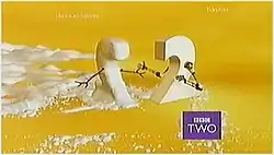 • Christmas 2002 - A 2 moves left in the screen, and as the camera pans round, we see a snow-covered floor. The 2 then makes a snow 2, complete with sticks for arms. This ident was used in conjunction with the Christmas 2001 version. This ident was also used outside of Christmas during spells of snowy weather. This ident was reinstated during December 2015 as part of that year's Christmas presentation, but with the soundtrack replaced with a choir repeatedly singing "two" to the tune of Deck the Halls.[6] This ident was reused during December 2016.