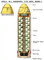 | Cordite cartridge | Mk I Shrapnel shell | No. 80 fuze | T friction tube |