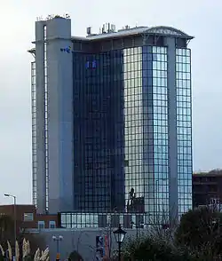 The BT Tower (Welsh: Tŵr BT) is located near Swansea Castle and is the second tallest building in Swansea after The Tower, Meridian Quay. It has 13 floors and is 63 metres (207 ft) high.[1] Completed in 1970 by the General Post Office,[1] the BT Group uses it as an office building.