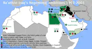 Following the 1966 Syrian coup d'état, which overthrew the Aflaqite faction led by Michel Aflaq, Salah al-Din al-Bitar, Munif al-Razzaz and others, the original Ba'ath Party split into Iraqi-dominated and a Syrian-dominated ba'ath movements. The two movements established separate National Commands; the National Command was in theory the highest party body in both movements and controlled their respective ba'athist movements. However, in both countries the National Command was under the control of its respective Regional Command. In the Iraqi-dominated Ba'ath movement, all National Command members came from their regional branch—for instance, there was always a member representing the Ba'ath Party branch in Jordan.[1] In theory, the National Command was the highest party organ between national congresses,[2] with the power to control the affairs of Regional Commands in other regions (countries).[3]