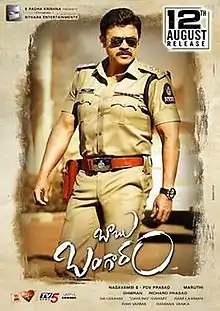 Babu Bangaram (transl. The Boy is Gold) is a 2016 Indian Telugu-language action comedy film produced by Suryadevara Naga Vamsi, P. D. V. Prasad on Sitara Entertainments banner and directed by Maruthi.[2] Starring Venkatesh and Nayanthara,[3][4][5] it has music composed by Ghibran.[6]