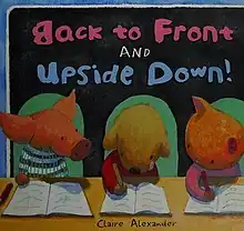 Back to Front and Upside Down! is a picture book for children by British novelist Claire Alexander. The book deals with the difficulty some children might face when learning how to write. Alexander was awarded the Young Readers' Schneider Family Book Award in 2013 for her work.