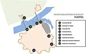 - 1 2 "Recinto abaluartado de Badajoz / Muralla Vauban de Badajoz". monumentosdebadajoz.es (in Spanish). 14 June 2012. Retrieved 10 December 2016.
