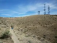 Badger Mountain is a small mountain in Richland, Washington. Badger rises above the Tri-Cities connected to the smaller Candy Mountain via Goose Gap, is visible throughout much of the area and is a popular hiking destination for a wide variety of climbers. There are a number of trails climbing the mountain with varying levels of difficulty. Most of Badger Mountain is protected by the Badger Mountain Centennial Preserve, but the radio towers at the peak are private property.[2] There are two summits on Badger Mountain, named the East Summit and the West Summit. The West Summit is the highest.