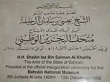 - 1 2 3 "About Bahrain National Museum". Bahrain Authority for Culture and Antiquities. Retrieved 13 September 2019.