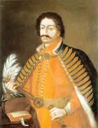 Baron Bálint Balassi de Kékkő et Gyarmat (Hungarian: Gyarmati és kékkői báró Balassi Bálint, Slovak: Valentín Balaša (Valaša) barón z Ďarmôt a Modrého Kameňa; 20 October 1554 – 30 May 1594) was a Hungarian[1][2][3] Renaissance lyric poet. He wrote mostly in Hungarian,[4] but was also proficient in eight more languages: Latin, Italian, German, Polish, Turkish, Slovak, Croatian and Romanian.[4] He is the founder of modern Hungarian lyric and erotic poetry.