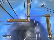 Two power-ups are available.[1] If the ball rolls into them they provide either an extra ball or extra points. Checkpoints are scattered evenly across levels so that if a player falls off the course they only have to restart the game from the last checkpoint reached.