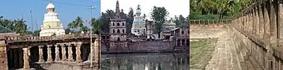 There is a 360 ft (109.7 m) square water tank in the forefront of the temple at the entrance, which is locally called as Haridra Tirtha, a corrupted version of the name Harishchandra Tirtha. The pond is enclosed with stone mantapas (halls) on three sides.[4][5][9][10][11] A pradakshina or circumambulatory path surrounds the tank.[12]