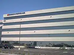 Popular's world headquarters are located in the San Juan's Hato Rey business district, on a stretch of a thoroughfare commonly known as Milla de Oro ("The Golden Mile") due to the number of banks headquartered in the area. Travelers who fly into the Luis Muñoz Marín International Airport can appreciate Popular's landmark building below.