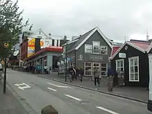 With the building of a bridge over Lækinn, the stream running from Tjörnin along what is now Lækjargata, in 1828, Bankarstræti, along with the contiguous Austurstræti and Laugavegur, became some of the most important streets in Reykjavík.[1] The street saw Reykjavík's first street light, an oil-lamp beside Lækjartorg. Since the earlier twentieth century, the street has been one-way. Since 2012, Bankastræti, along with Laugarvegur and Skólavörðustígur, has been pedestrianised during the summer as part of the 'sumar götur eru sumargötur' ('some streets are summerstreets') scheme.[2]