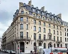 Originally, the bank was established at 34, rue Laffitte, in a building that was later demolished.[46] In July 1902, it moved to a new headquarter building nearby on 15 bis, rue Laffitte, designed by Henri Paul Nénot and whose exterior still survives.[47]