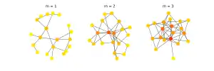 - ↑ Klemm, K.; Eguíluz, V. C. (2002). "Growing scale-free networks with small-world behavior". Physical Review E. 65 (5): 057102. arXiv:cond-mat/0107607. Bibcode:2002PhRvE..65e7102K. doi:10.1103/PhysRevE.65.057102. hdl:10261/15314. PMID 12059755. S2CID 12945422.