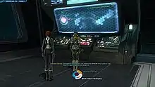 Players' choices permanently open or close storylines and affect players' non-player character (NPC) companions.[18] It is intended that the game should provide more context for characters' missions than any previous MMORPG. Every character in the game, including the player character, features full voice dialog to enhance gameplay, and interactions feature a dialogue system similar to that used in the Mass Effect series.[18] Players are able to choose from a variety of NPCs, although spending time with a single companion will help more in developing story and content than dividing time among several,[23] and may even develop a love interest.[24] It is possible for players to "blow it big time" if they fail to meet NPCs' expectations.[23] Players also have access to several planets,[18] including Korriban, Ord Mantell, Nal Hutta, Tython,[25] Coruscant, Balmorra, Alderaan, Tatooine, Dromund Kaas, Taris, Belsavis, Voss, Hoth, Corellia, Ilum and Quesh, and the moon Nar Shaddaa. The planet Makeb was added in Patch 2.0, along with the Rise of the Hutt Cartel expansion pack.[26]