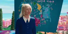 Barbie and Ken apologize to each other, acknowledging their mistakes. Ken bemoans his lack of purpose without Barbie, so she encourages him to find an autonomous identity. Barbie, who remains unsure of her own identity, meets with the spirit of Ruth Handler, Mattel co-founder and creator of the Barbie doll, who explains that Barbie's story has no set ending and her ever-evolving history surpasses her roots.