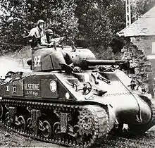 On 8 September 1944, the 106th Panzer-brigade attempted a counter attack between Mairy and Briey to try and block General Walton Walker's US XX Corps advance towards the Moselle, but were repelled with heavy losses. Two days later the 2nd French Armoured Division split into three Groupement tactique groups – the first, 'Groupement Langlade' led by Colonel Paul de Langlade, led the French advance towards Epinal.[9] Further north, the other two battle groups, 'Groupement Dio' and 'Groupement Billotte' were supporting the US 44th Infantry Division and the 79th Infantry Division respectively.[10] 'Groupement Langalde' consisted of one mechanized infantry battalion the Régiment de marche du Tchad (in M3 half-tracks) and two tank battalions – the 12e régiment de chasseurs d'Afrique and the 501e Régiment de chars de combat.[11] These were also divided into three groups, named after their commanders, Jacques Massu, Joseph Putz and Pierre Minjonnet. Each one was made up of a few infantry companies riding in M3 half-tracks, sixteen M4 Sherman tanks and three or four M10 Wolverine tank destroyers.[9]