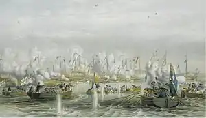 ![]() Advance of British boats during the naval battle at Fatshan Creek, by Oswald Walters Brierly | |||||||