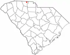 On October 4, the Patriot militia reached Ferguson's former camp at Gilbert Town,[24] where thirty Georgia militiamen joined them, anxious for action.[25] On October 6, they reached Cowpens, South Carolina (site of the future Battle of Cowpens), where they received word that Ferguson was east of them, heading towards Charlotte and Cornwallis. They hurried to catch him.[26] American spies reported Ferguson was making camp on Kings Mountain with some 1200 men.[27] Ferguson, rather than pushing on until he reached Charlotte and safety (just a day's march away), camped at Kings Mountain and sent Cornwallis another letter asking for reinforcements.[28] Kings Mountain is one of many rocky forested hills in the upper Piedmont, near the border between North and South Carolina. It is shaped like a footprint with the highest point at the heel, a narrow instep, and a broad rounded toe. The Loyalists camped on a ridge west of Kings Pinnacle, the highest point on Kings Mountain.
