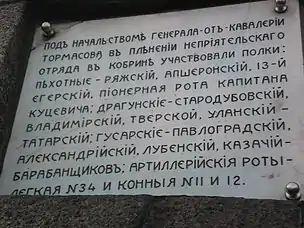 Memorial plaque on the monument of the victory of Russian troops in Kobryn