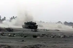 ![]() A U.S. Marine M1 Abrams tank fires its 120mm cannon at Iraqi forces during fighting near Umm Qasr, 23 March 2003. | |||||||